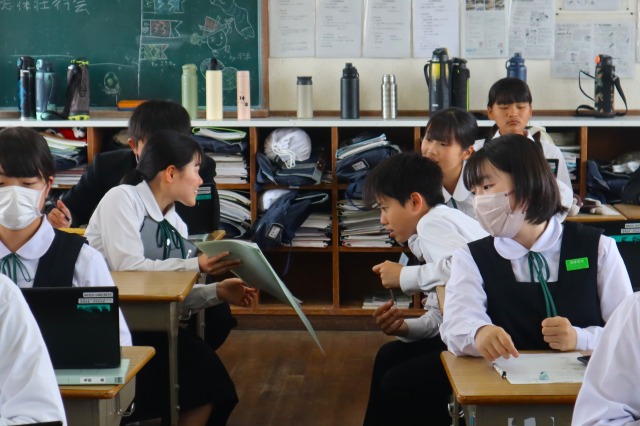 高校調べ(3年生) 2024年5月22日 17時00分 今日は3年生の学級活動の時間におじゃましました。 進路学習で「高校調べ」をしていました。 自分が興味を持った高校について、高校のホームページを見て、特色やどんな勉強をするか、行事や制服、卒業後の進路などについて調べ、ワークシートにまとめていました。 目標が見つかれば、意識や行動も変わってきます。 早い段階で目標を決めて動き出す方が、夢を叶えられる可能性も高くなります。 今回の進路学習を通して、目標を決めていきましょう。