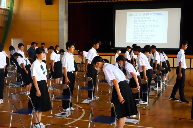 印象のよい身だしなみや挨拶、コミュニケーションの取り方、職場体験中のマナーなど実践を交えながら教えていただき、職場体験学習はもちろん高校入試にも応用できることも多く、有意義な講座となりました。